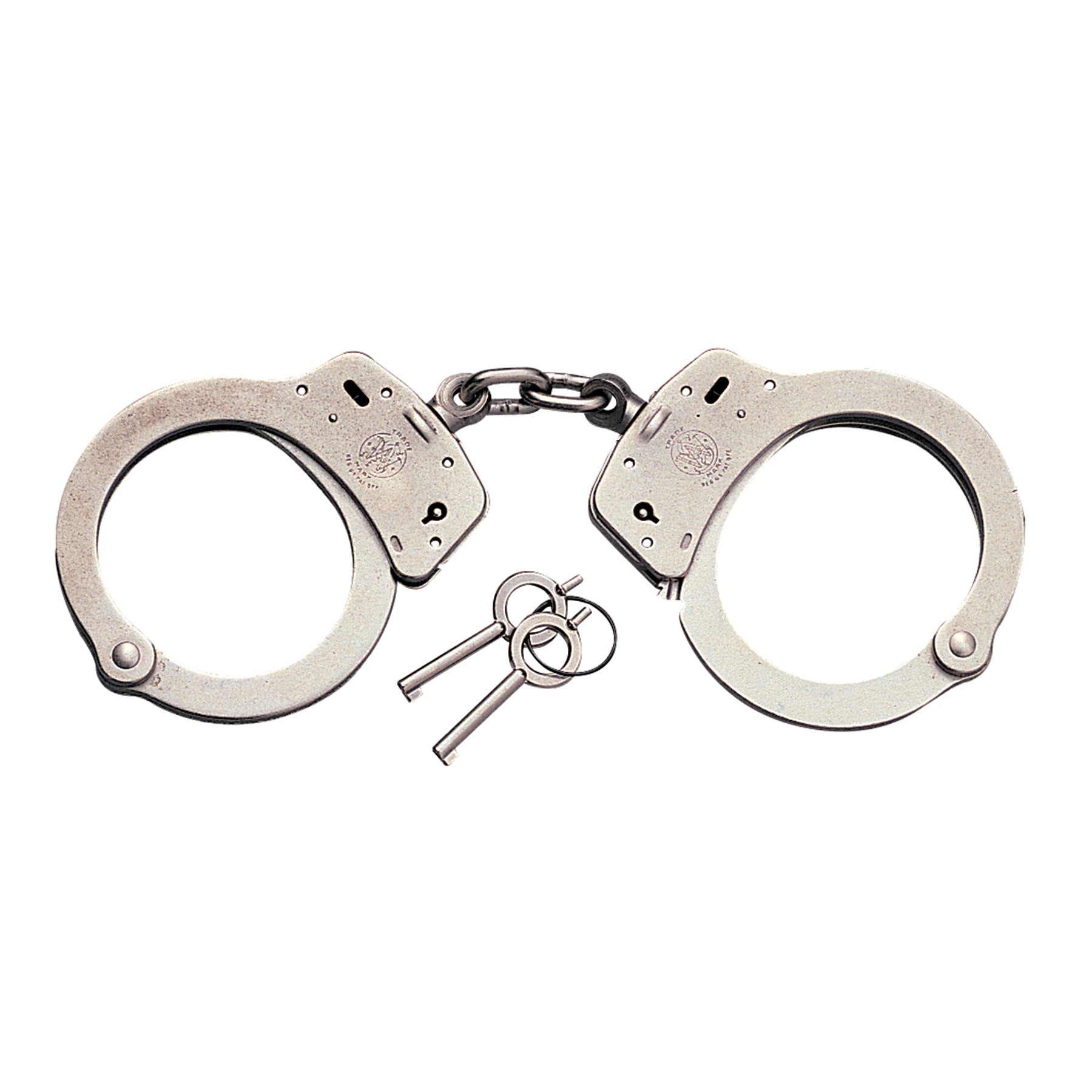The Smith & Wesson handcuffs are made of carbon steel. The handcuffs have 23 locking positions. Handcuffs meet U. S. National Institute of Justice tests for workmanship, strength, corrosion, and tamper resistance.